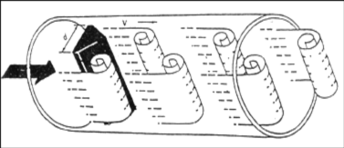 在流体中设置三角柱型旋涡发生体,则从旋涡发生体两侧交替地产生两列有规则的旋涡,这种旋涡称为卡门涡街,如图(一)所示